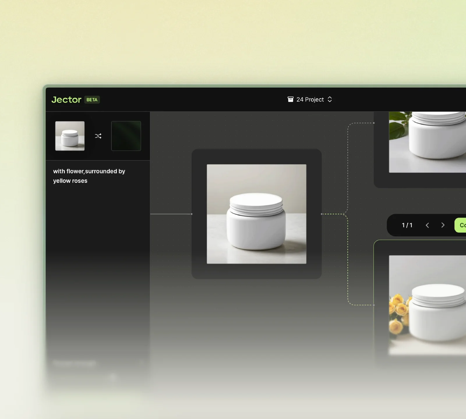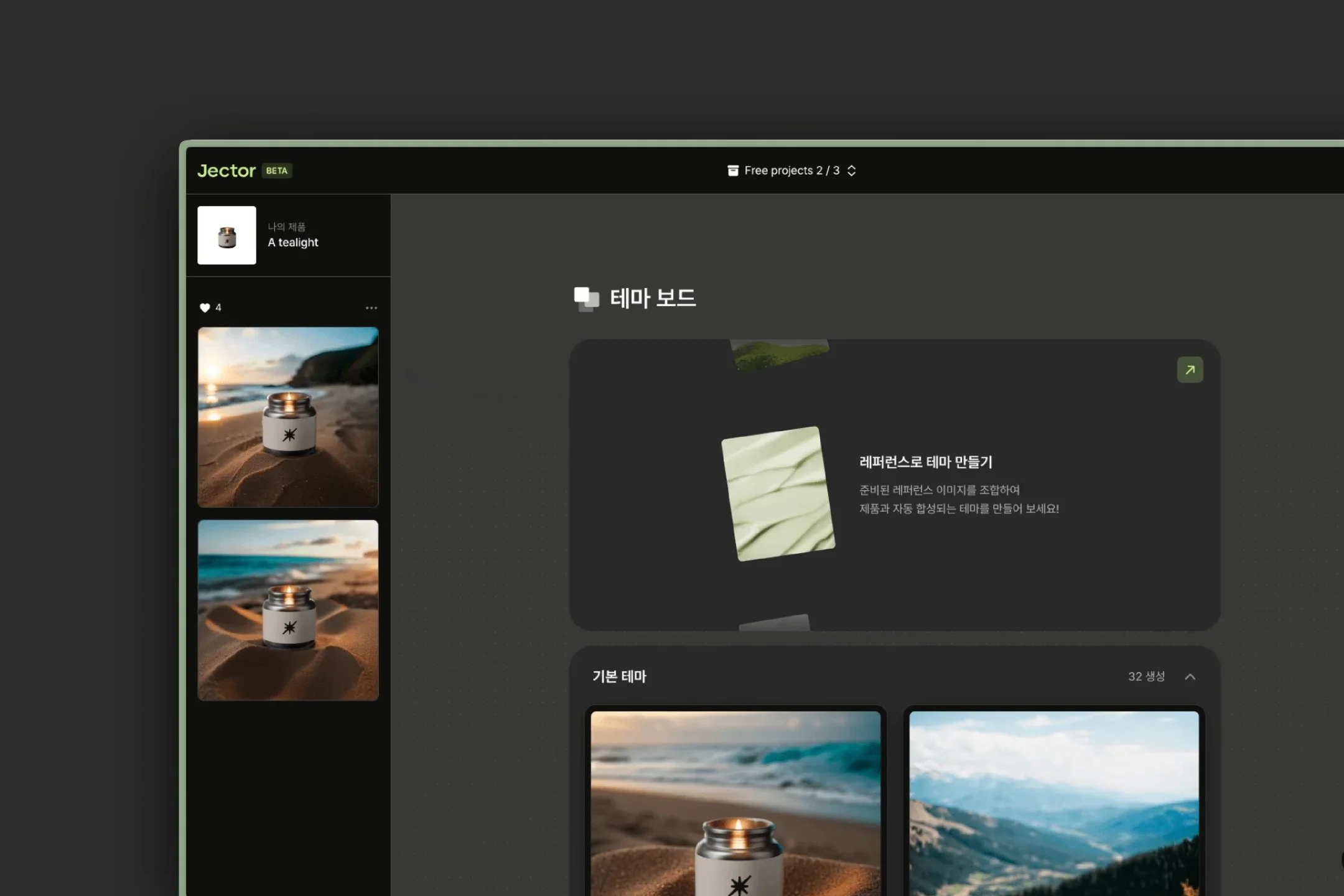 프롬프트 또는 레퍼런스 이미지를 통해 제품 배경으로 사용할 이미지를 생성할 수 있습니다.